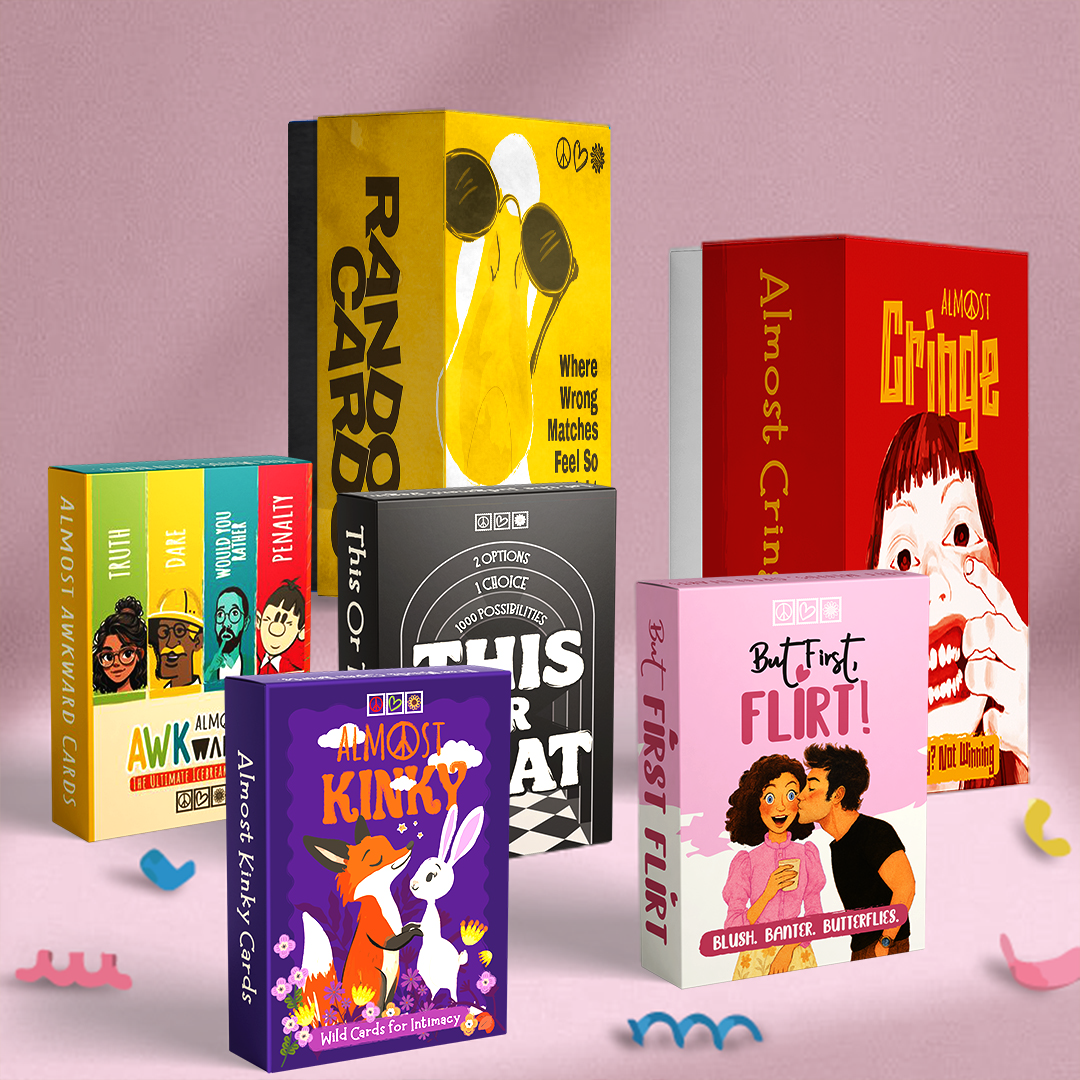 The complete Almost Hippie experience—six decks spanning dates, parties, ice breakers, and deep chats. Perfect for gifting, content creators, and anyone who loves having options.